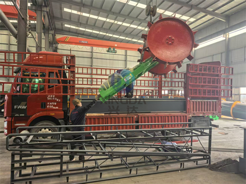 开往廊坊现场的一车有机肥轮盘式发酵翻抛设备完成装车准备出发:轮盘翻抛机通常配备轨道或轮胎,可沿发酵槽纵向移动。工作时,高速旋转的轮盘(带耙齿或刀片)切入粪堆,通过离心力抛散物料,实现翻堆与破碎一体化,同时促进氧气渗透,利于好氧微生物繁殖,加速有机肥发酵。