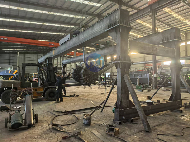 设备加工现场:有机肥轮盘式翻抛机正在制作加工中:轮盘式翻抛机可根据发酵槽的宽度定做不同跨度。轮盘式翻抛机适用于猪牛羊鸡等畜禽粪便、污泥垃圾、糖厂滤泥、糟渣饼粕和秸杆锯屑等有机废弃物的发酵翻堆,广泛应用于有机肥厂、复混肥厂、污泥垃圾厂、园艺场以及双孢菇种植厂等的发酵腐熟和去除水分作业。轮盘式翻抛机生产量较大,主要适用于大型有机肥生产线。