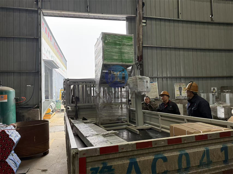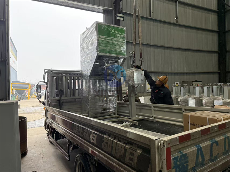 厂区车间正在对一台有机肥自动包装设备进行装车: