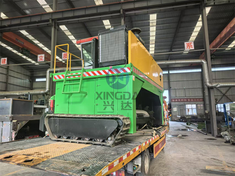 齐齐哈尔2.5米有机肥履带翻抛设备准备开始装车了:有机肥履带翻堆机是一种专门用于处理和翻动有机肥料的机械设备,其主要功能是通过履带驱动系统,将堆积的有机肥料进行翻动、搅拌,以促进其发酵过程。这种设备通常配备有搅拌装置,能够均匀地混合有机物料,提高发酵效率,减少臭气排放。此外,履带式设计使其能够在各种地形条件下灵活移动,适用于大规模农场和有机肥料生产厂。有机肥履带翻堆机不仅提高了工作效率,还减少了人工劳动强度,是现代农业中不可或缺的重要设备之一。