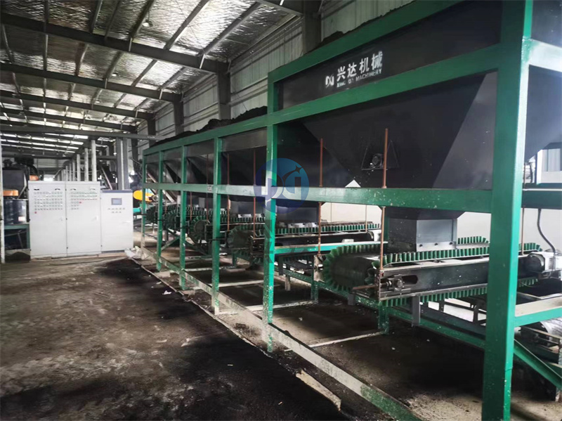 7、堆温升至50℃时开始翻倒,每天一次,如堆温超过65℃,再加次翻倒。温度控制在70℃以下,温度太高对养分有影响。