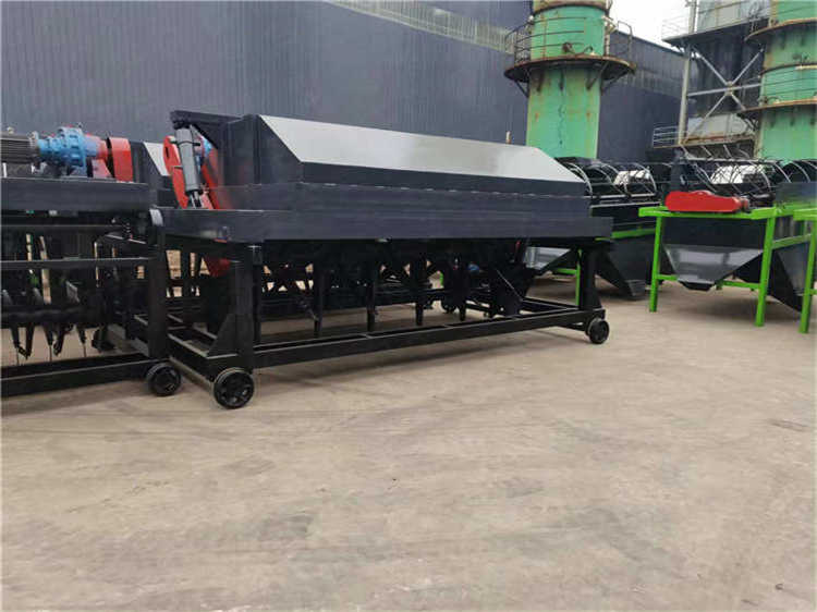 它包括行走发酵槽体、行走轨道、取电装置、翻抛翻堆部分以及转槽装置(也叫转运车,主要是用于多槽使用的情况)。翻抛翻堆工作部分采用滚筒传动,有可升降式的和不能升降的两种。